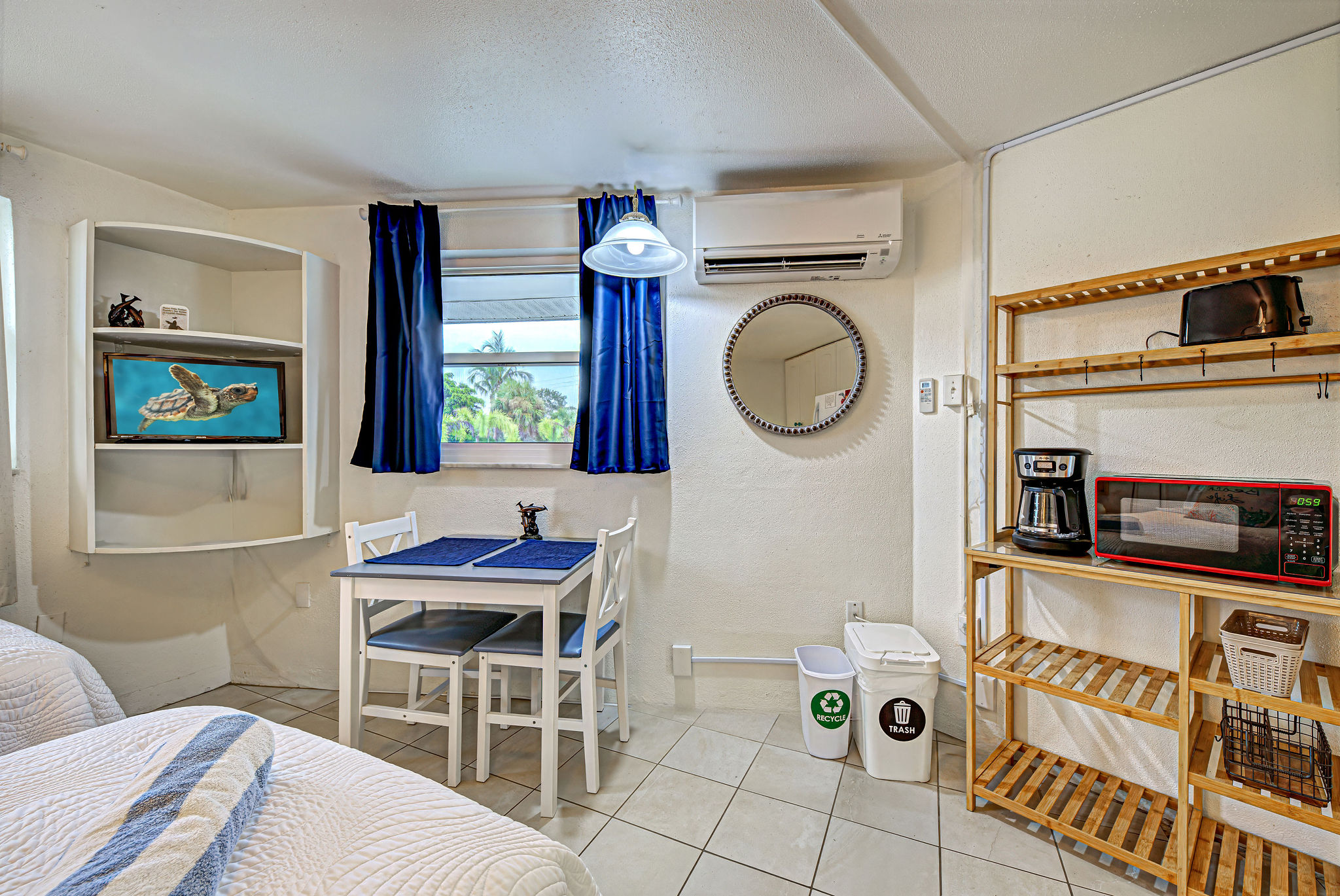 - Efficiency with two single beds and TV/DVD