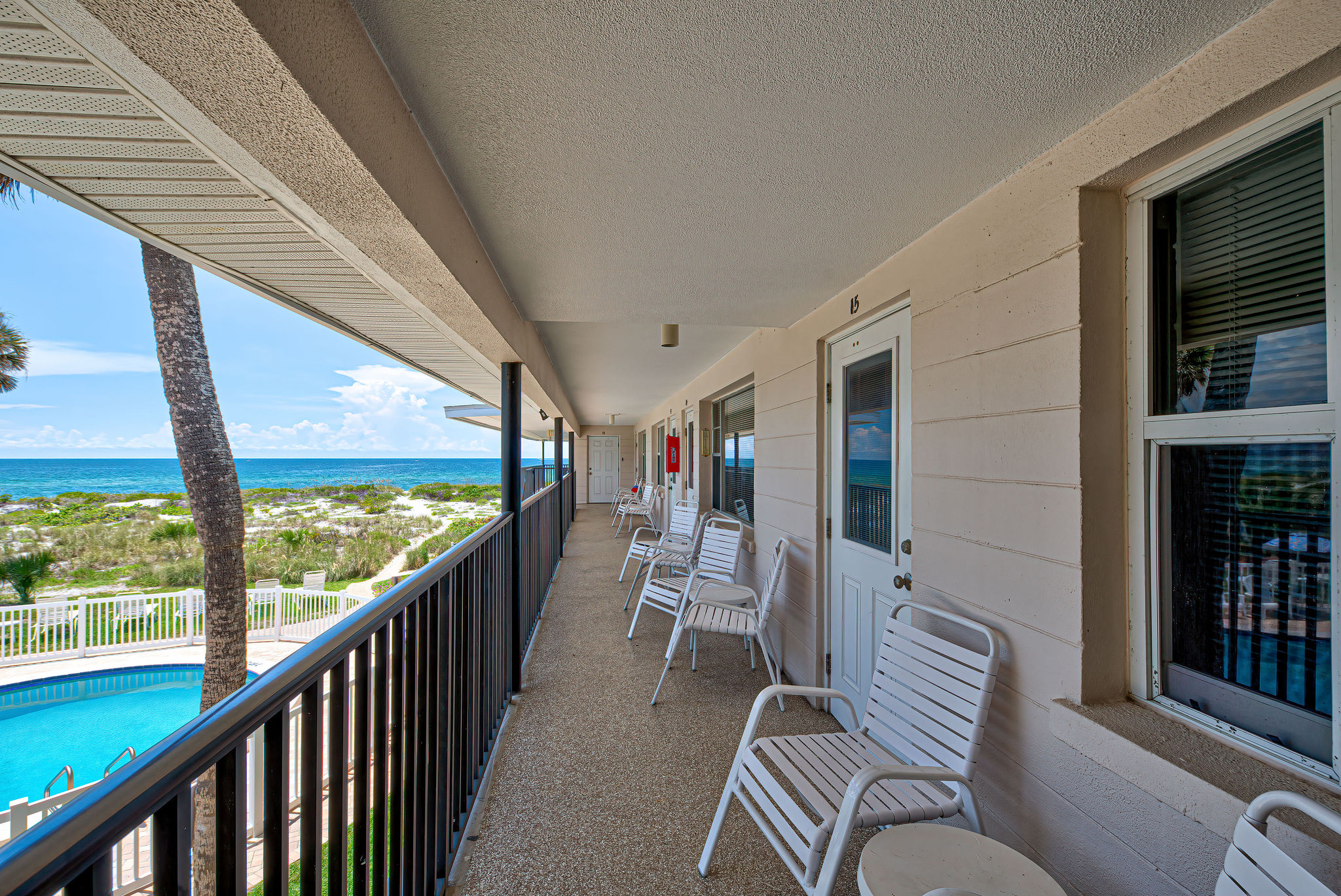 - Gulf facing balcony with chairs and table